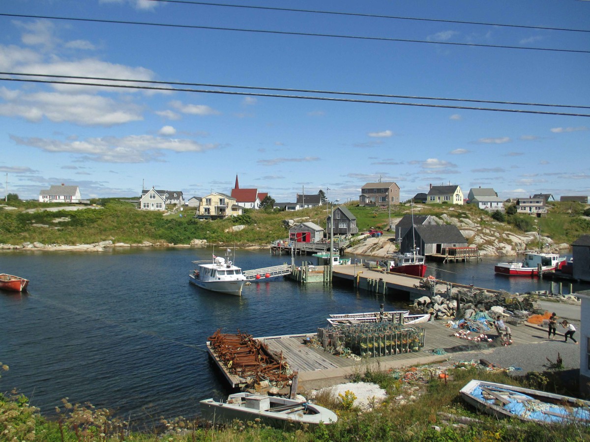 Unser erster Stop auf diesem Roadtrip war ein winziger Ort namens Peggy’s Cove, der uns mehrfach wärmstens empfohlen worden war. Und tatsächlich ist Peggy’s Cove einer der schönsten Orte, die ich je gesehen habe. Dies liegt zum einen an der Gestaltung des Orts selbst: kleine, bunte Fischerhäuser aus Holz mit Hummerkisten davor, die auf ebenso kleinen Felsinseln liegen, zwischen denen das Wasser glitzert und in dem sanft die Ruderboote der Fischer schaukeln. Dabei erweckt der Ort aber zu keinem Zeitpunkt den Eindruck, als hätten die Bewohner dies alles nur zum Vergnügen der Touristen so eingerichtet. Vielmehr besticht Peggy’s Cove durch seine Natürlichkeit und Echtheit und erinnert häufig an die Schäreninseln vor Stockholm (Ferien auf Saltkrokan, weißte Bescheid, ne?! 😉 ). Zum anderen liegt es aber auch an der Landschaft Nova Scotias, die so anders ist, als alles was ich bisher in Kanada gesehen habe. Die Landschaft im Westen Kanadas, allen voran die Rocky Mountains, stiehlt dir den Atem. Sie lässt dich staunend zurück, lässt dich winzig fühlen angesichts der gewaltigen und übermächtigen Größe der Natur. Die Landschaft Nova Scotias hingegen ist von einer leisen und heimlichen Schönheit, die sich in dein Herz schleicht, ohne dass du es direkt bemerkst, und dort ein Gefühl von Glück und stillem Frieden hinterlässt. Vor den Rocky Mountains steht man mit weit aufgerissenen Augen und geöffnetem Mund. In Nova Scotia steht man mit einem sanften Lächeln und einem weit geöffnetem Herz. Nova Scotia ist nicht bombastisch und hinterlässt doch einen bleibenden Eindruck beim Besucher.
