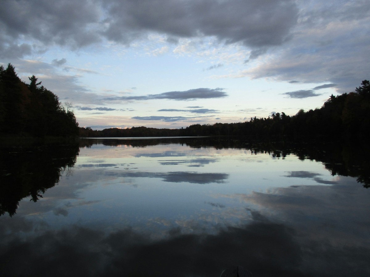 Außerdem haben wir mit dem Kanu den nahe gelegenen See erkundet. Dabei hatten wir uns extra in der Dämmerung auf den See gewagt, in der Hoffnung Biber zu sehen. Die Hoffnung wurde leider nicht erfüllt, zwar konnten wir die Biber hören und ihren Damm auch sehen, aber nicht die Biber selbst. Immerhin konnten wir die absolute Ruhe und die Schönheit der Natur auf dem See und rundherum bewundern.